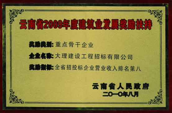 云南省2009年度建筑行業(yè)發(fā)展獎勵扶持
