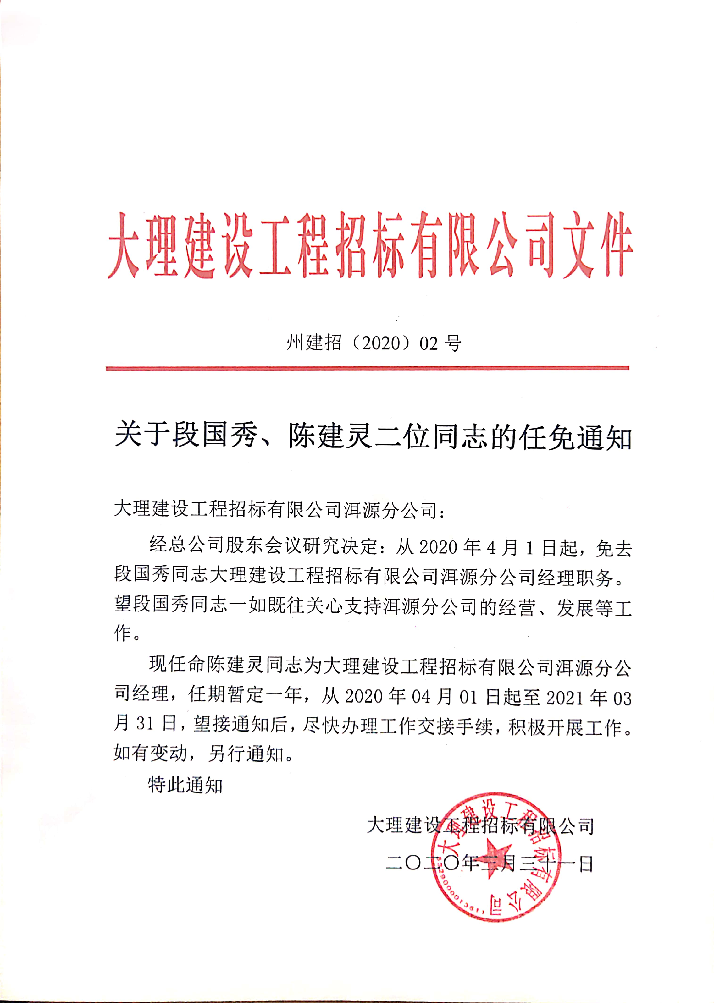 關(guān)于洱源分公司人事任免通知