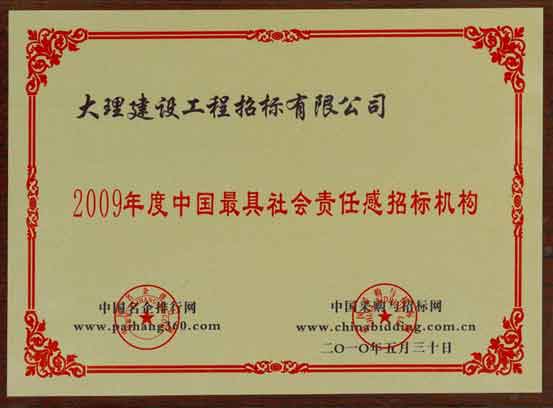 2009年度中國最具社會責(zé)任感招標(biāo)機構(gòu)榮譽